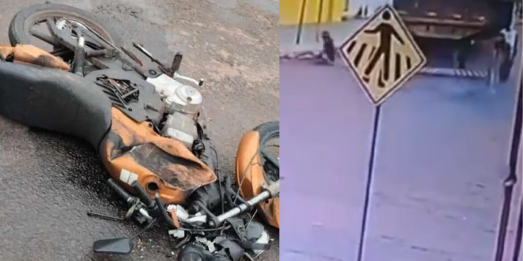Isso porque o homem escapou da morte ao escorregar no asfalto pelo bairro da caçamba em movimento. A motocicleta ficou totalmente destruída e o acidente foi registrado por câmera.