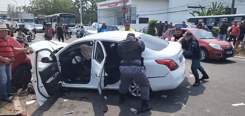MANAUS – O cabo da PM Rafael Araújo acaba de dar mais detalhes do acidente que matou o motociclista Marcelo Rodrigues na manhã desta quinta-feira (21), na Max Teixeira, zona norte de Manaus. De acordo com o policial, o condutor do Versa, identificado como Eric Juano, foi o responsável pelo acidente. “Ele vinha com pressa”, diz o policial, que ouviu o condutor do carro, que bateu em um Fox e depois atingiu a moto.