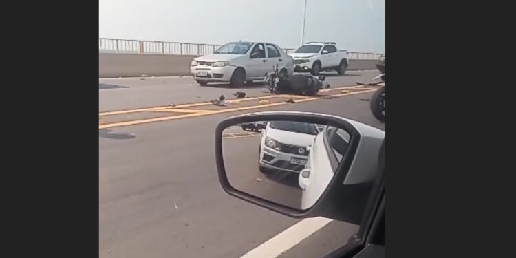A Ponte Rio Negro foi palco de um grave acidente neste domingo (2), que tirou a vida do idoso Pedro Pereira, de 67 anos. Ele perdeu o controle da moto, bateu em um veículo e morreu na hora.