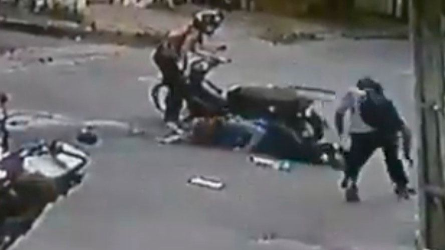 Naquele momento, um homem, que também estavam em uma moto e passava pelo local, testemunhou o acidente. Ele para no meio da vida com certa urgência e corre para pegar a bolsa da mulher, que tentava ajudar seu acompanhante.