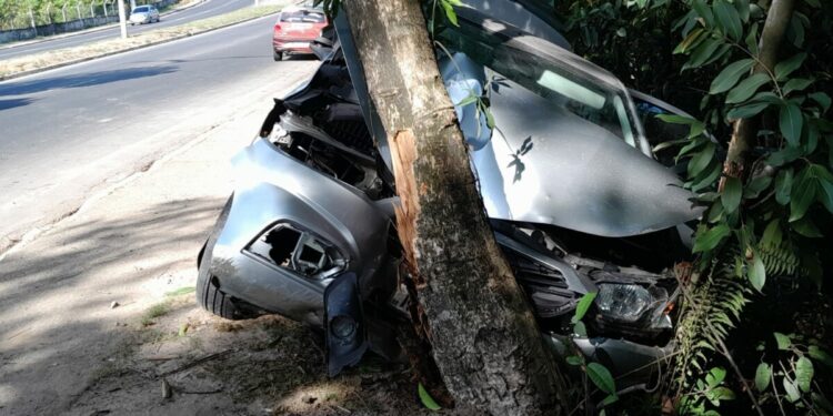 MANAUS (AM) – A polícia ainda não sabe quem é o motorista que dirigia um carro modelo Ônix Plus de placa RMZ3C43, que acabou destruído em uma árvore na madrugada desta segunda-feira (29), na Avenida do Turismo, em Manaus. Sabe-se que o veículo é de uma locadora.