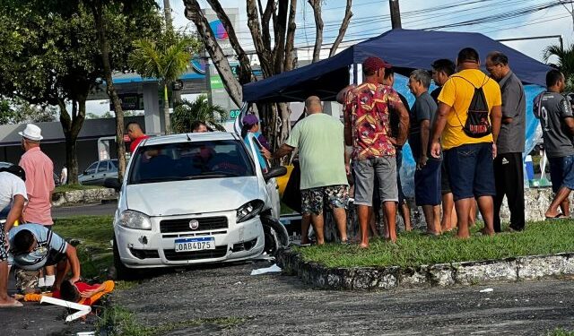MANAUS – AM | Na manhã deste domingo (5), um carro em alta velocidade invadiu a calçada e atropelou duas pessoas que estavam em uma banquinha de café localizada na Avenida Noel Nutels, bairro Cidade Nova, Zona Norte de Manaus.