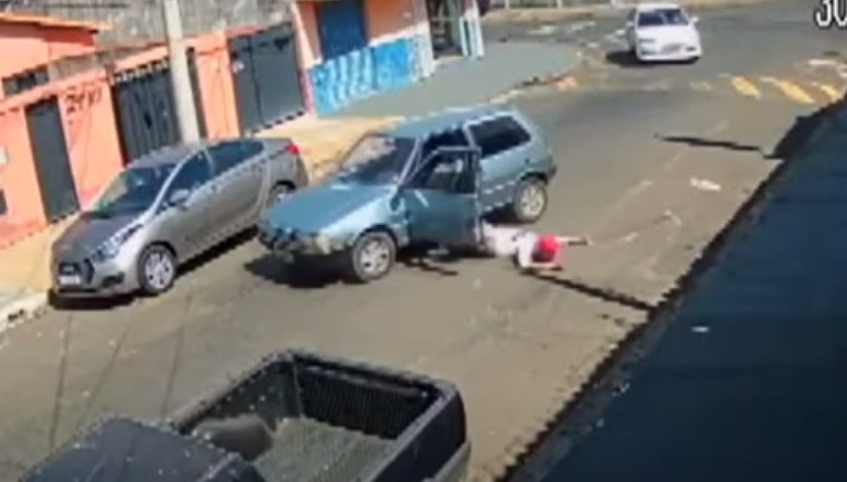 SÃO PAULO | Um motorista caiu do próprio carro em movimento, no último sábado (30), em Franca (SP). Imagens de câmeras de segurança registraram o momento em que ele cai e o veículo segue em movimento.