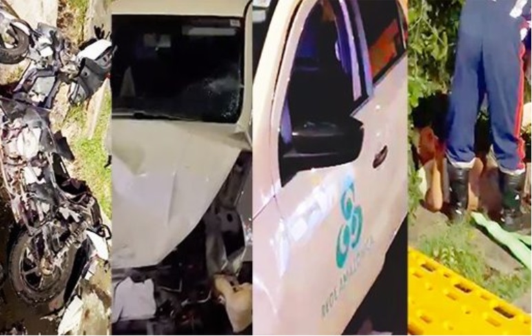 O acidente ocorreu por volta das 22h45, logo após o carro da emissora cruzar a avenida. A moto vinha no sentido contrário e foi atingida.