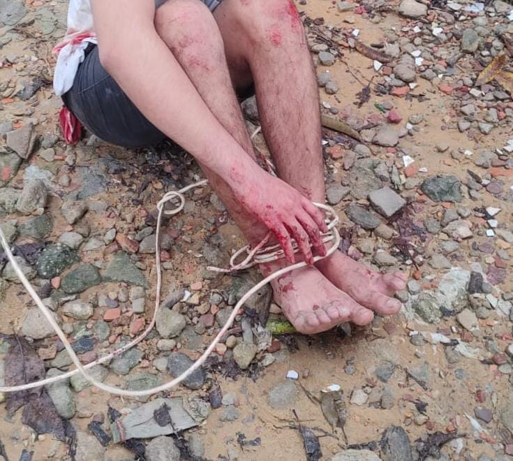 De acordo com o comandante da 10ª Companhia Interativa Comunitária (Cicom), capitão Libório, a polícia foi acionada por meio do Ciops, para socorrer um homem que estava amarrado em uma área de tráfico de drogas conhecida como “Porteira”.