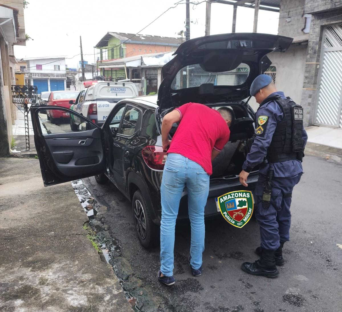 O carro dele, um Renault KWID de placas RVU-5H35 de cor preta, foi localizado na rua 13 do Alvorada I, após a empresa de monitoramento rastreá-lo.