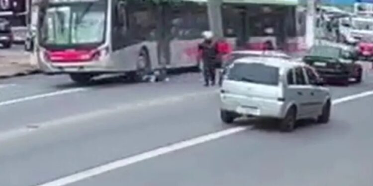SÃO PAULO | Um motorista de transporte público estressadinho perdeu a paciência durante uma briga de trânsito em São Paulo e passou por cima de uma motocicleta.