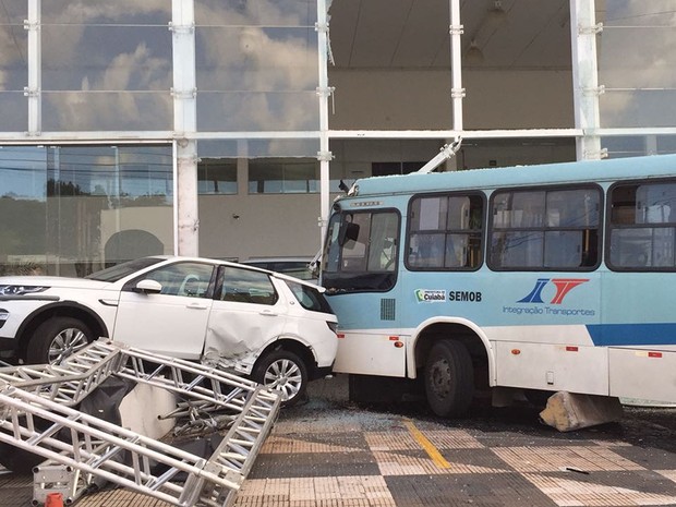 Cuiabá – Passageiros de um ônibus de transporte coletivo ficaram feridos após o veículo perder o controle e invadir uma loja que vende carros de luxo localizada na Avenida Fernando Correa da Costa, em Cuiabá, na manhã desta segunda-feira (14). Uma Land Rover que estava exposta na frente da concessionária foi atingida.