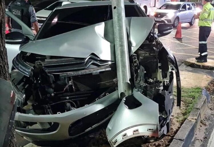 MANAUS (AM) – Um carro modelo Citroen C4 ficou totalmente destruído após o motorista perder o controle e colidir contra um semáforo, na noite desta terça-feira (11), na avenida Djalma Batista, Zona Centro-Sul.