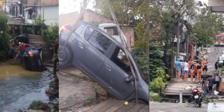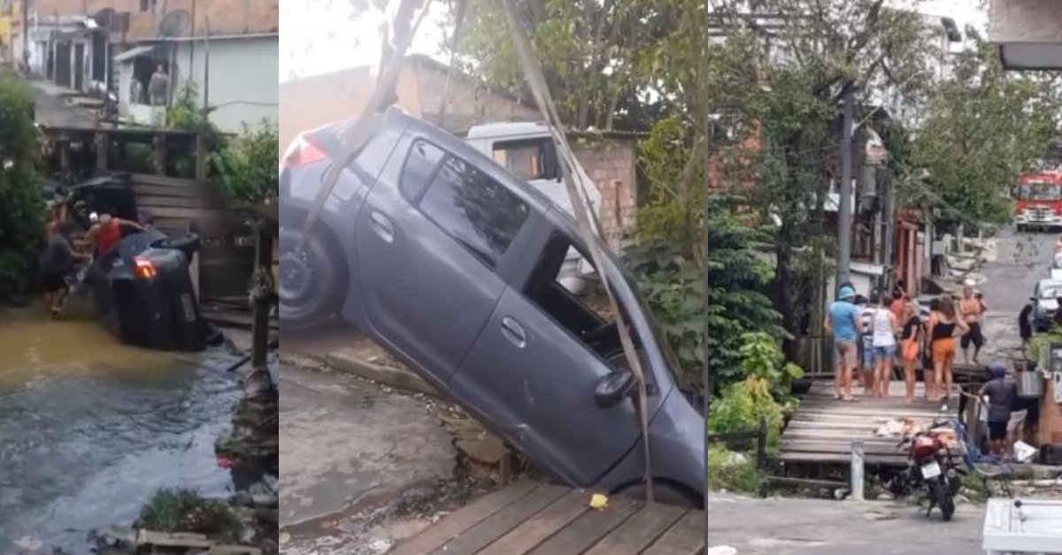MANAUS – AM | Neste domingo (20), um carro despencou no igarapé do bairro Nova Esperança 2, zona Oeste de Manaus, ao tentar atravessar a ponte de madeira localizada na rua Chico Mendes.