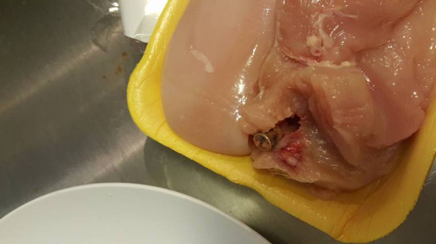 Carla disse que a bala estava escondida dentro da carne. “Estava dentro da carne imperceptível. Só achei porque ia moer o frango no triturador para fazer nuggets. Eu poderia ter feito o frango grelhado e engolir! Aguardo uma posição da empresa antes de entrar com um processo e fazer um B.O”, disse.