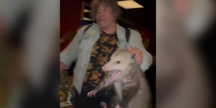 EUA | Corajosa! Uma mulher retirou uma mucura – o famoso gambá – de dentro de um restaurante no Brooklyn, em Nova York (EUA);