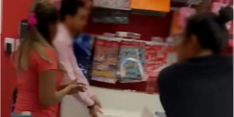 Vídeo que circula pelas redes sociais mostra o momento em que uma cliente se exalta e chama a trabalhadora de “neguinha escrava”.