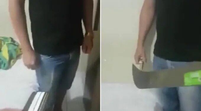 Ao ser questionado, Felipe negou tudo, mas a esposa furiosa puxou um facão para ele confessar e destaca que o nome dele está no cartão. Mesmo assim, o homem nega e afirma que ela é louca.