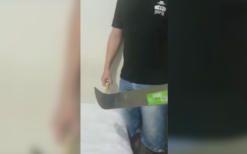 Na gravação, a mulher aparece com o cartão na mão, esperando o marido, identificado como ‘Felipe’, chegar. Ela então o questiona, que nega ter ser o dono do papel, que supostamente dá direito a um “serviço” grátis a cada 4 idas ao estabelecimento. Ela então pega o terçado e o ameaça, quando o vídeo é encerrado.