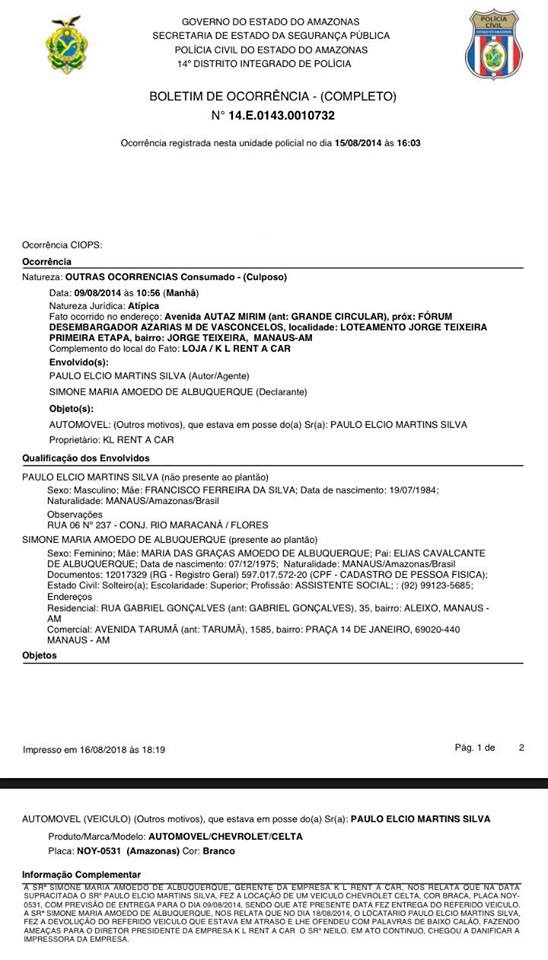 No último sábado, 11/08, Paulo enviou vários áudios com ofensas e a vítima fez Boletim de Ocorrência contra ele, após isso ele começou a fazer diversas ameaças. Uma delas, ele disse que ela ‘poderia procurar a polícia ou justiça que não daria em nada, que ele tem parentes juízes e era irmão de um delegado da polícia civil’.