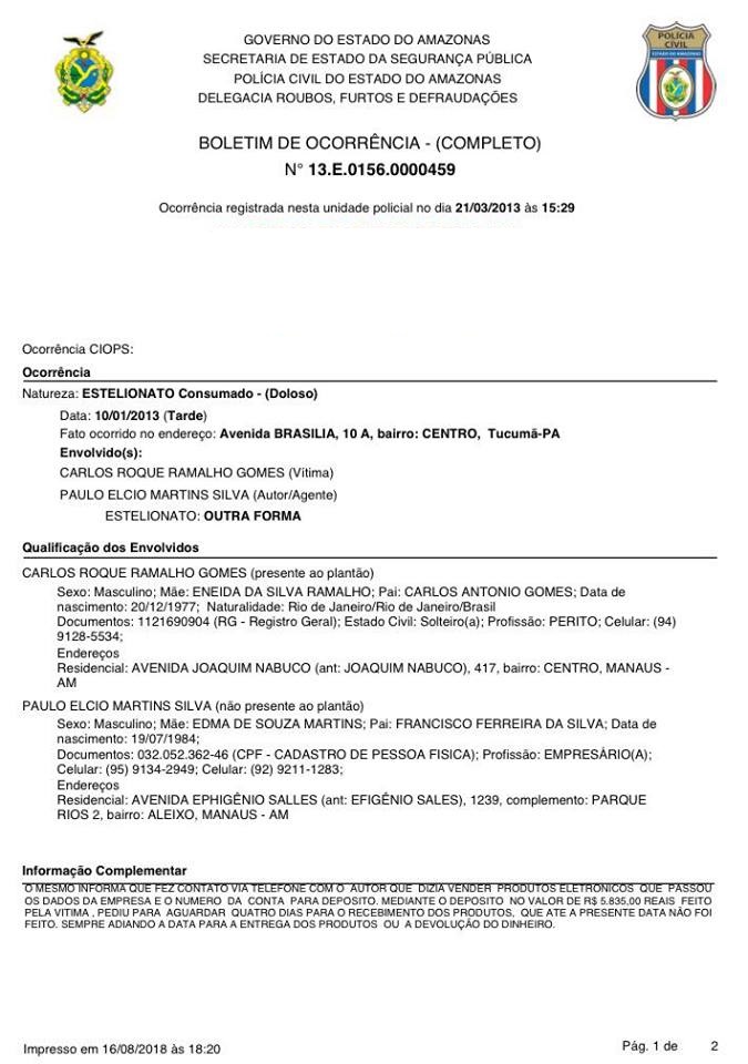 A mulher conta que pagou ao golpista R$ 350 no dia 04 de agosto deste ano, para viajar de Manaus para Curitiba. A viagem não aconteceu.