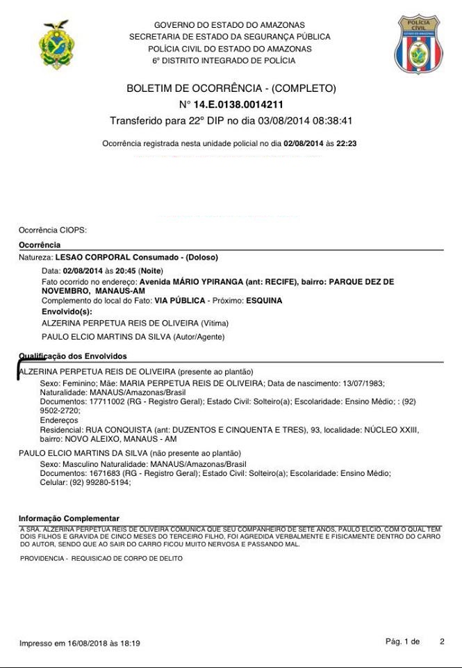 No último sábado, 11/08, Paulo enviou vários áudios com ofensas e a vítima fez Boletim de Ocorrência contra ele, após isso ele começou a fazer diversas ameaças. Uma delas, ele disse que ela ‘poderia procurar a polícia ou justiça que não daria em nada, que ele tem parentes juízes e era irmão de um delegado da polícia civil’.