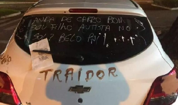Ela escreveu diversas palavras e frases no carro do homem, que estava estacionado na rua. Entre elas, “traidor”.
