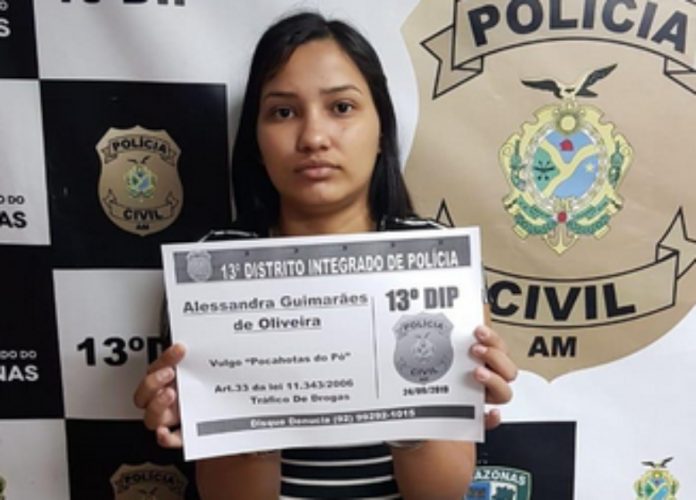 Manaus – A Polícia Civil do Amazonas, prendeu, em flagrante, na tarde de terça-feira (24), Alessandra Guimarães de Oliveira, 22, conhecida no mundo do crime como “Pocahontas do Pó”, com diversas trouxinhas de oxi, anotações que seriam parte da contabilidade do tráfico e uma quantia em dinheiro.