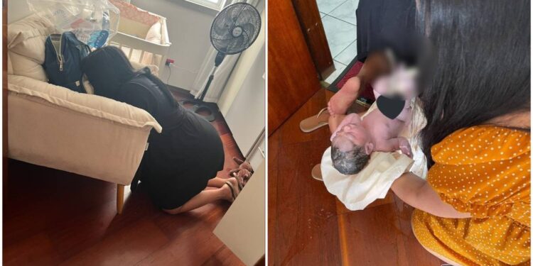 Quando Giselle entrou no período expulsivo do parto, o pai da criança, Lucas Soares, se preparou para recebê-la nos braços. Assim que o bebê nasceu, Lucas ligou para o atendimento médico, enquanto Dienny envolvia a criança em tecidos limpos.