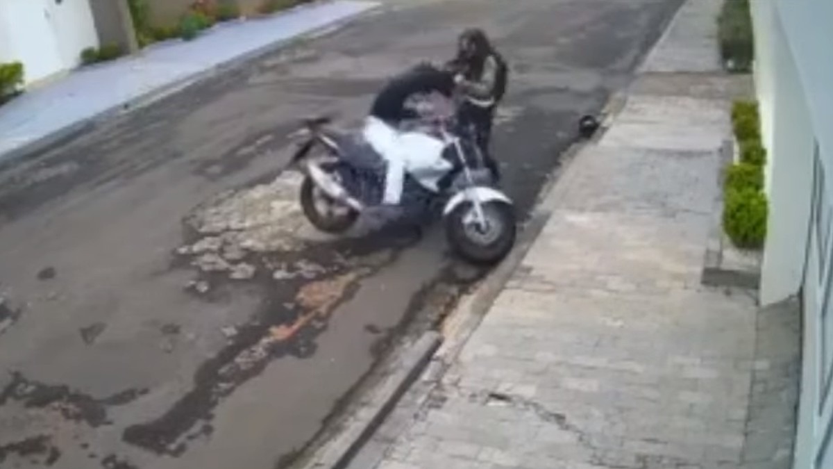 De acordo com a Polícia Militar, o caso aconteceu no bairro Jardim Panorama, por volta das 7h30, na porta do trabalho da vítima. O suspeito, encapuzado, aparece tentando pegar a chave da motocicleta da mão da mulher, mas ela reage.