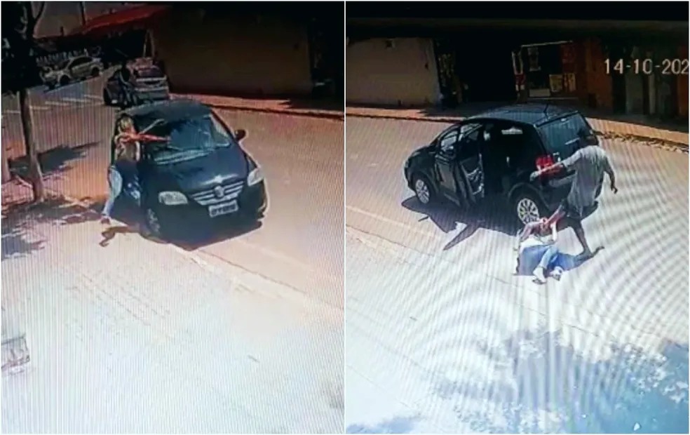 Nas imagens gravados por câmeras de segurança é possível ver que a vítima caminhava pela calçada quando um carro passa em alta velocidade e atinge a vítima. Na sequência, moradores ajudam a mulher, mas o agressor desce do veículo e a arrasta pelos cabelos no meio da rua.