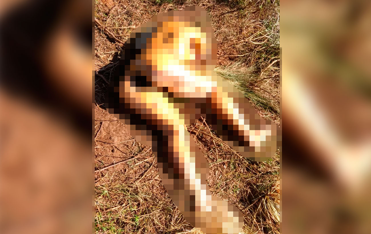 As fotos divulgadas do caso mostram o corpo já em estado de composição, sem roupa e decapitado.