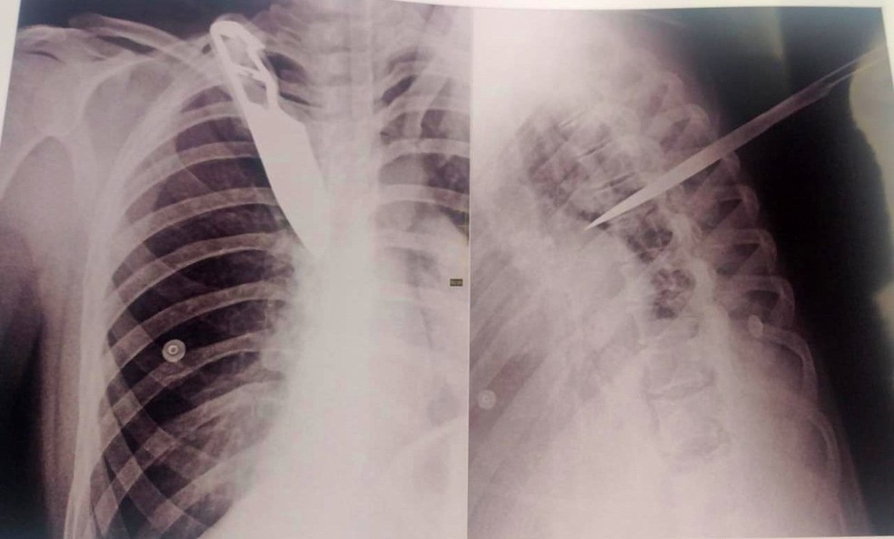 GÁLIA (SP) – A imagem de um raio-x com uma faca cravada nas costas chocou as pessoas que souberam o que aconteceu com uma mulher de 33 anos, em Marília, São Paulo (SP). A vítima, de acordo com a polícia, era a ex-mulher de um detento e a tentativa de homicídio aconteceu durante uma discussão, na terça-feira (28).