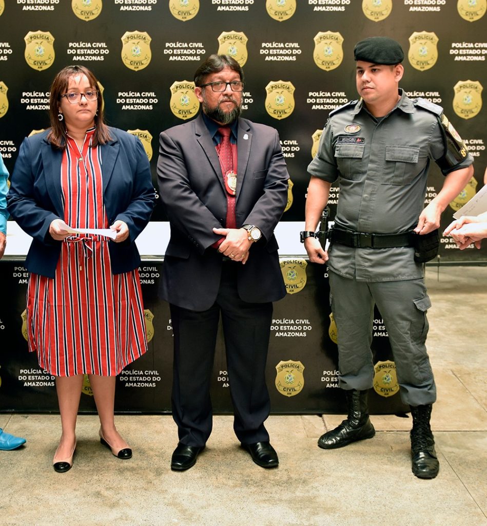 O casal, preso durante ação conjunta entre as polícias Civil e Militar, foi apresentado durante coletiva de imprensa realizada na manhã desta quarta-feira (30/01), às 11h, no prédio da Delegacia Geral. O delegado Geraldo Eloi, chefe de Gabinete da Polícia Civil do Estado, a titular da 31ª DIP e o subcomandante da 8ª Companhia Independente da Polícia Militar (CIPM) de Iranduba, capitão Ademar Minori, estiveram presentes no local.