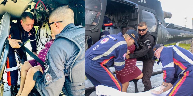 AMAZONAS – Uma mulher de 28 anos foi resgatada de helicóptero após entrar em trabalho de parto em uma comunidade Nova Canaã do Aruaú, localizada em Iranduba, no Amazonas. O caso ocorreu nesta quinta-feira (8).