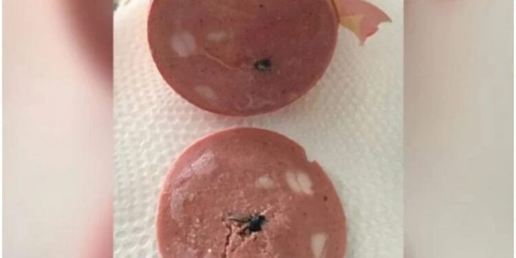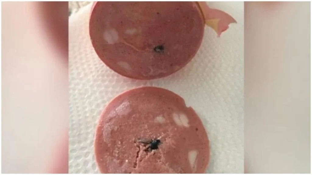 Em seguida, conforme os autos, a mãe se deparou com a mosca-varejeira cortada ao meio dentro da mortadela. Ela tomou um susto e chegou a vomitar depois de ver que consumiu alimento contaminado.