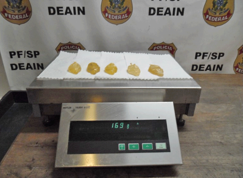Os cinco preservativos expelidos com a substância líquida foram encaminhados à Polícia Federal. A perícia constatou que o produto era cocaína.