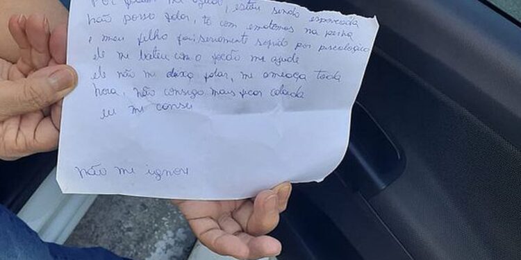 A mensagem entregue pela vítima aos funcionários diz que ela foi agredida na perna e que o homem a ameaçava a toda hora.