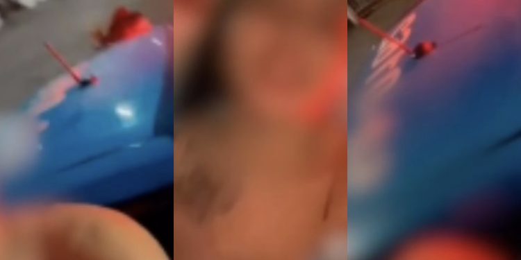 A mulher se grava pendurada no veículo que está até mesmo com o giroflex ligado, ela se exibe e dá língua para a câmera. É possível ver que há outra mulher dentro do carro, ela também está com o corpo para fora da outra janela.