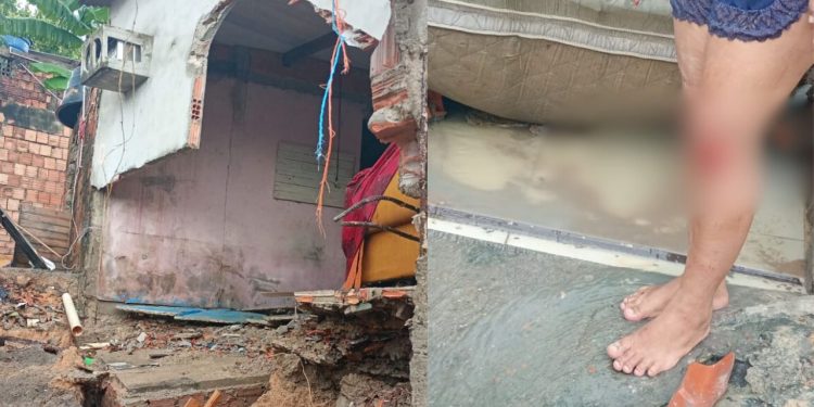 MANAUS (AM) – Uma mulher ficou ferida na tarde desta quinta-feira (31) após ser arrastada pela enxurrada provocada por uma forte chuva que atingiu a zona norte de Manaus. O caso ocorreu na rua Irajubá, no bairro Novo Aleixo, onde duas casas desabaram.