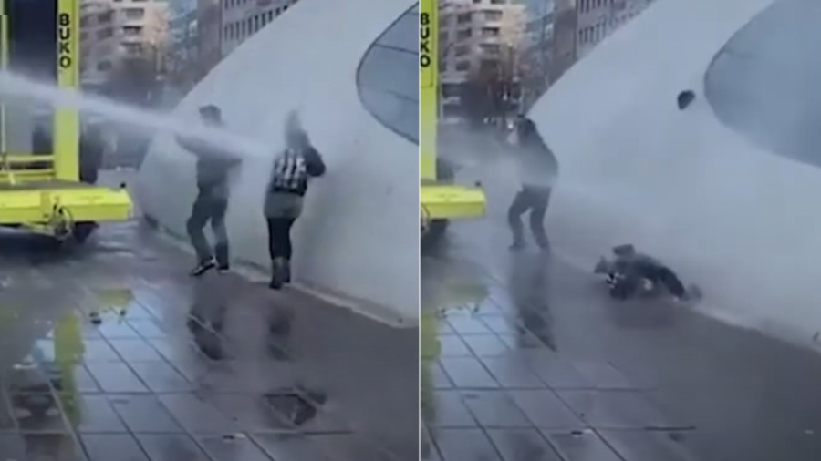 HOLANDA | Uma mulher alega ter sofrido fraturas o crânio depois de ser arremessada contra um muro por um canhão de água da polícia, durante protestos ‘anti-lockdown’ na Holanda, no final de semana passado. A cena foi gravada por outros pedestres.