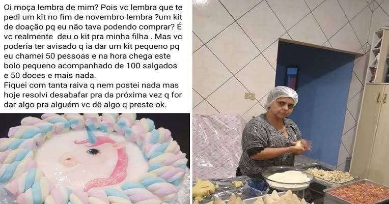 “Ela estava online e entrou contato comigo pedindo ajuda. Disse que estava desempregada e que o marido também, que a filha iria fazer aniversário, e não tinha nem um bolinho para cantar parabéns”, conta.