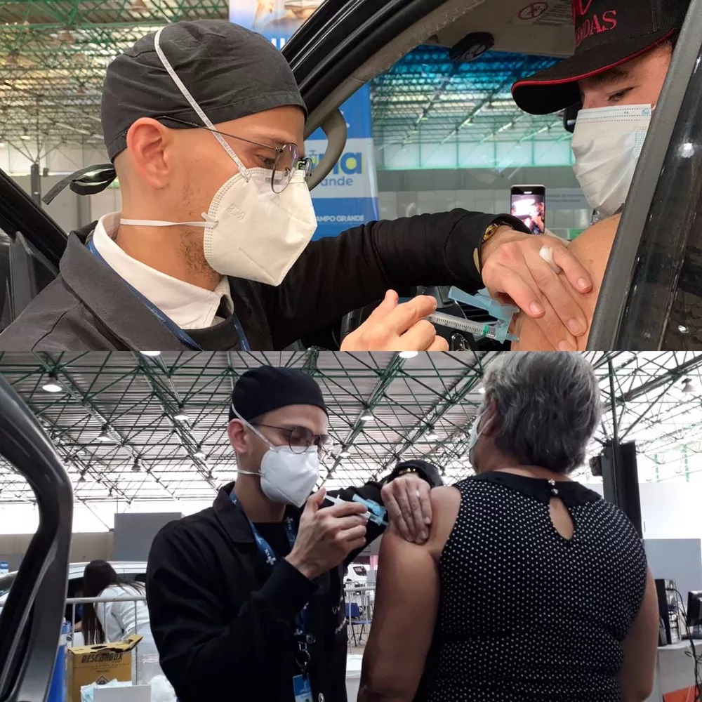Mesmo nos dias de folga, o dentista comparece nos drives e atua como vacinador voluntário. “Eu acabei me apaixonando e faço isso com alegria e satisfação, porque não tem nada melhor do que você saber que está usando o seu tempo ajudando as pessoas”.