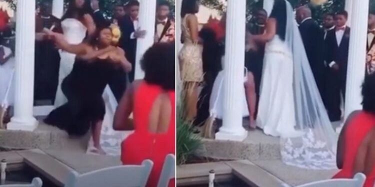 A filha da noiva, que era uma das madrinhas, não conseguiu conter a raiva e partiu para cima da mulher.