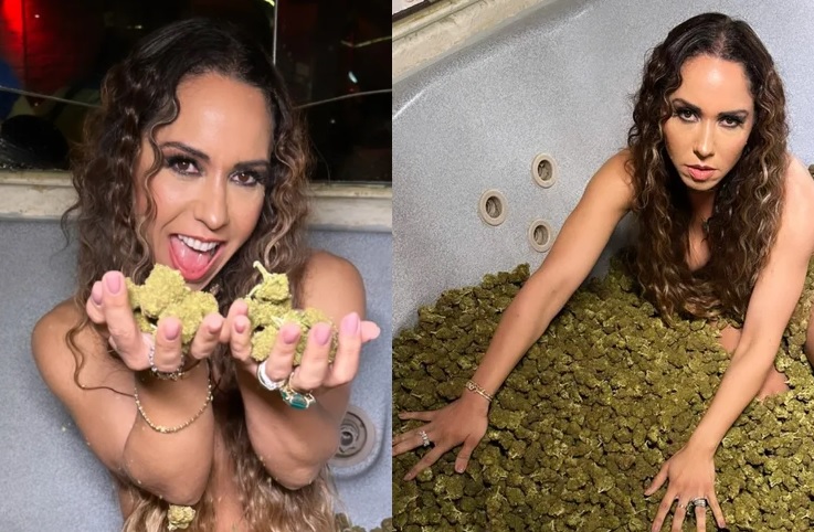 BRASIL – Fora da mídia, Renata Frisson, a Mulher Melão, está bombando após fazer um ensaio sensual em uma banheira com 50 quilos de maconha no Uruguai. Ela diz que já usu a droga, mas que o foco é medicinal.