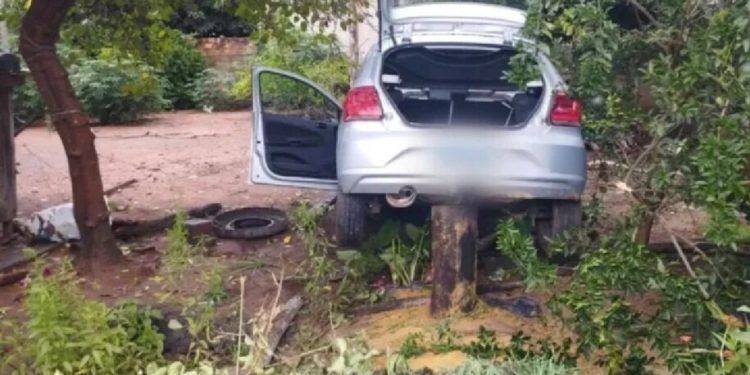 Segundo o relato da Polícia Militar, a vítima foi encontrada presa embaixo do carro e sem consciência.