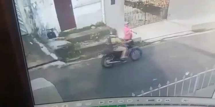 Em vídeo divulgado, é possível ver a mulher andando pela rua quando o homem na moto, faz a abordagem. Ela percebe a ação e corre para dentro de uma casa, o suspeito a segue e atira contra a mulher, mas o tiro atingiu apenas o portão de alumínio da casa.