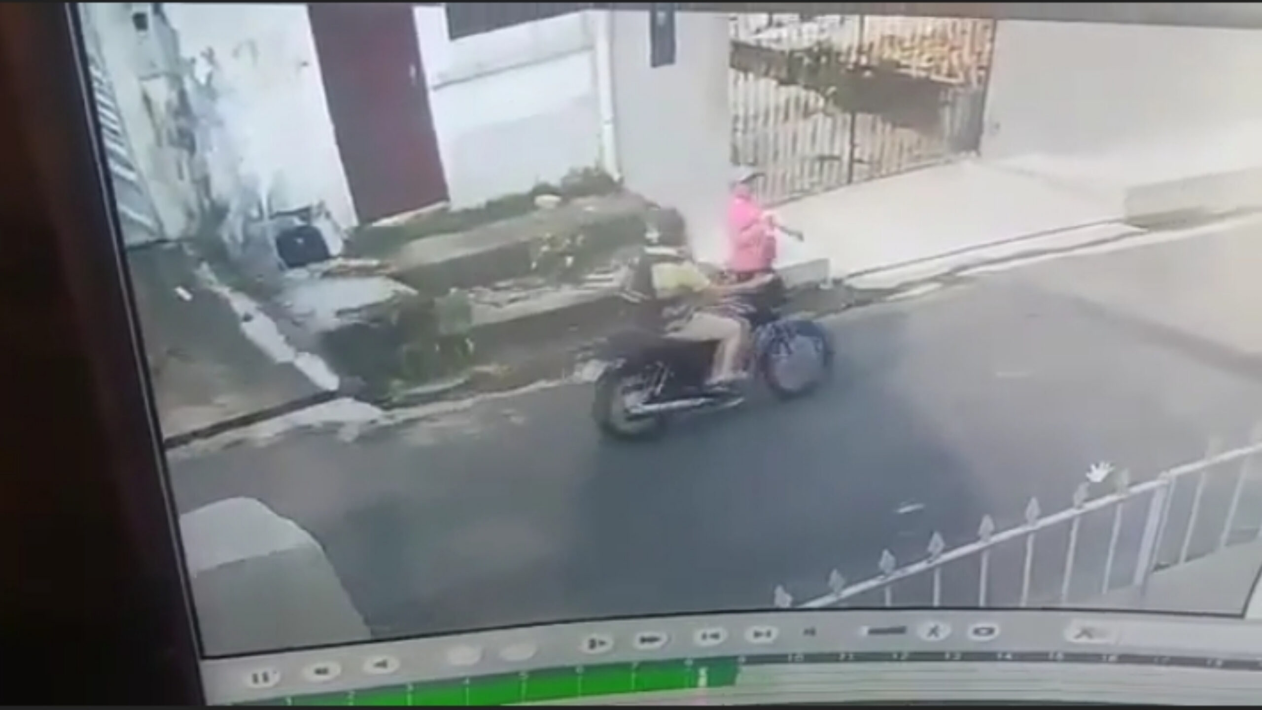Em vídeo divulgado, é possível ver a mulher andando pela rua quando o homem na moto, faz a abordagem. Ela percebe a ação e corre para dentro de uma casa, o suspeito a segue e atira contra a mulher, mas o tiro atingiu apenas o portão de alumínio da casa.