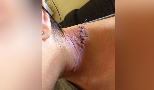 “Na hora eu senti cortando. Fiquei desesperada quando vi que era uma linha com cerol. Eu pensei que ia morrer. Os médicos me disseram que por um milímetro teria pego minha artéria e eu teria morrido”, relata a mulher.