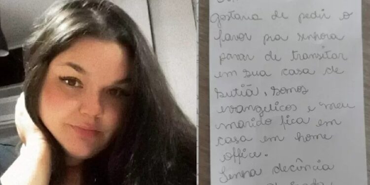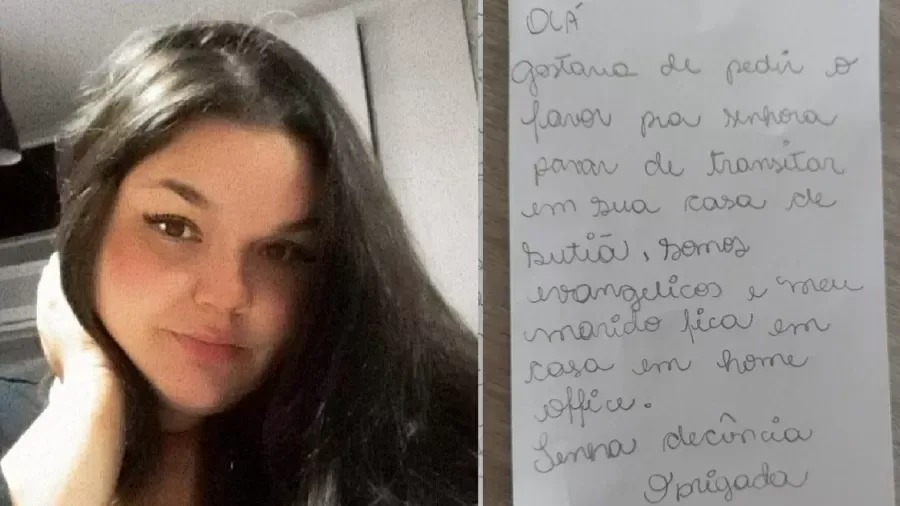 SÃO PAULO | A confeiteira Juliana Kulpa, de 25 anos, moradora de um edifício em Osasco, na Grande São Paulo, recebeu um bilhete de uma vizinha pedindo que ela parasse de andar pela seu próprio apartamento usando apenas sutiã: “Somos evangélicos e meu marido fica em casa em home office. Tenha decência”. Desde que divulgou o ocorrido nas redes sociais, há 20 dias, o caso tem gerado debate e indignação.