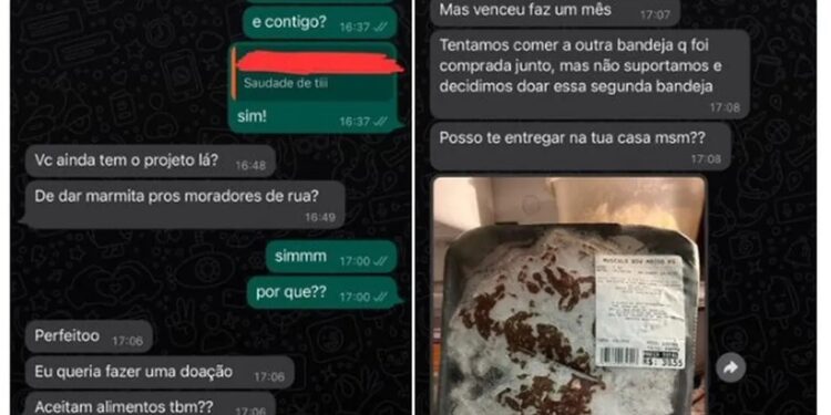 Uma das coordenadoras. Eduarda Poleza, expôs a mensagem de uma ‘amiga’ querendo fazer uma boa ação: a doação de um quilo de carne vencida há 1 mês.