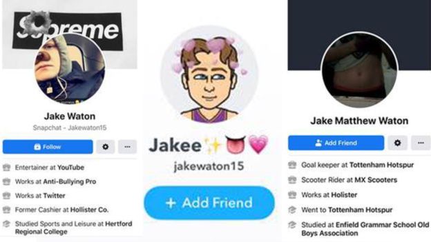 O jornal Scotland Yard, disse que Watts usava sua própria foto nas contas do Snapchat e Instagram, porém com o de “Jake”. Ela tinha como alvo, meninas de 13 a 16 anos onde dava “likes” em seus perfis.