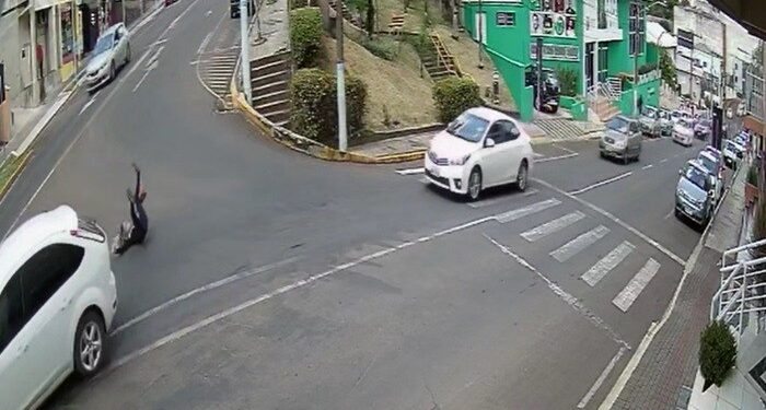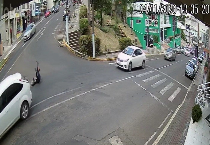 SANTA CATARINA | Uma mulher pulou de um carro em movimento para fugir de assédio praticado pelo motorista, na última quarta-feira, 4, em Videira, no Oeste de Santa Catarina. O vídeo de uma câmera de segurança registrou o momento em que a jovem pula do veículo.
