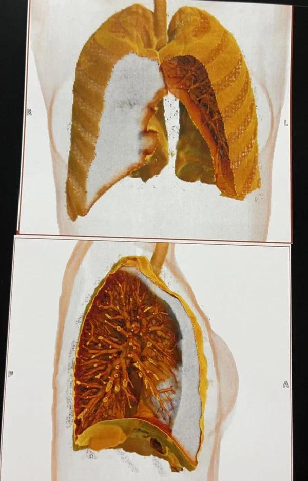 O laudo apontou pneumotórax, descrito como “presença de ar entre as duas camadas da pleura (membrana fina, transparente, de duas camadas que reveste os pulmões e o interior da parede torácica), resultando em colapso parcial ou total do pulmão”. Entre os sintomas, estão dificuldade respiratória e dor torácica.